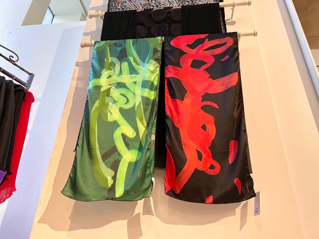 These imaginative pieces have also been exhibited in New York City at the Union League Club Gallery in the artist’s show, Arias as Art…On Silk. This line, produced on the finest luxury silk, blends the innate artistry of the opera with Claudia Palmira’s creative fusion of musicality and silk.